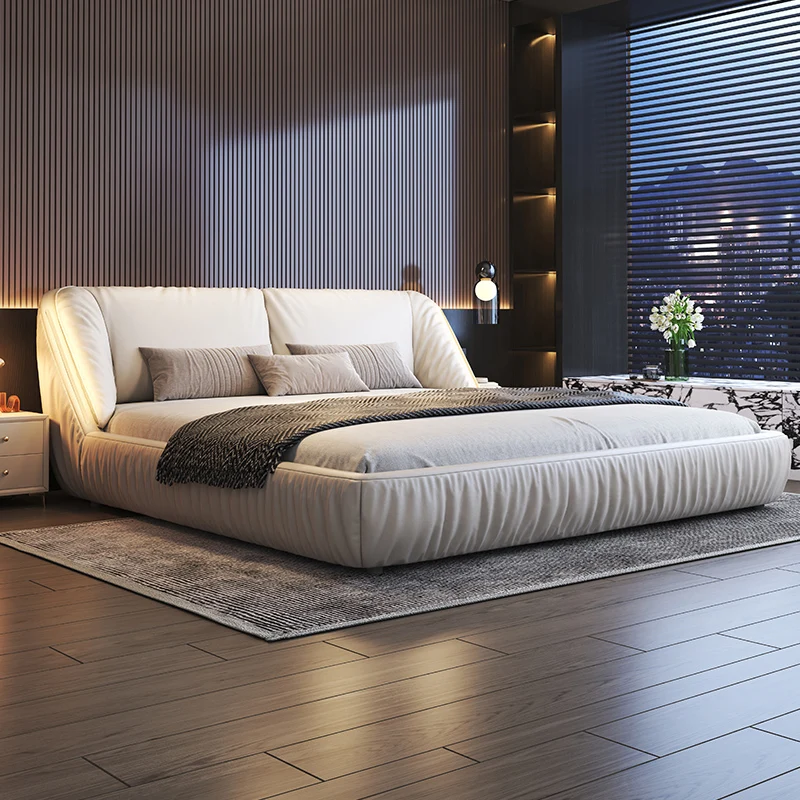 Bedroom Furniture Modern Leather Double Bed Headboard Frame Cama De Casal King Bed 150X200 Wood Shelve Luxury Modern