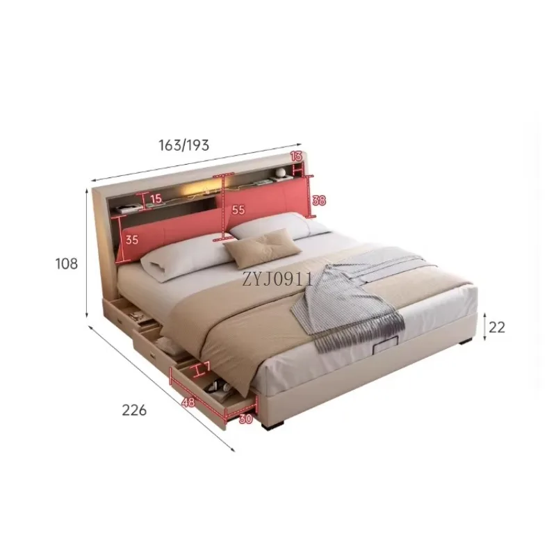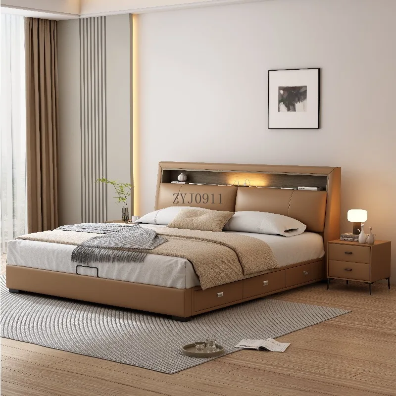 Italian master bedroom double bed 1.8×2 luxury double bed storage 1.5m net red leather bed
