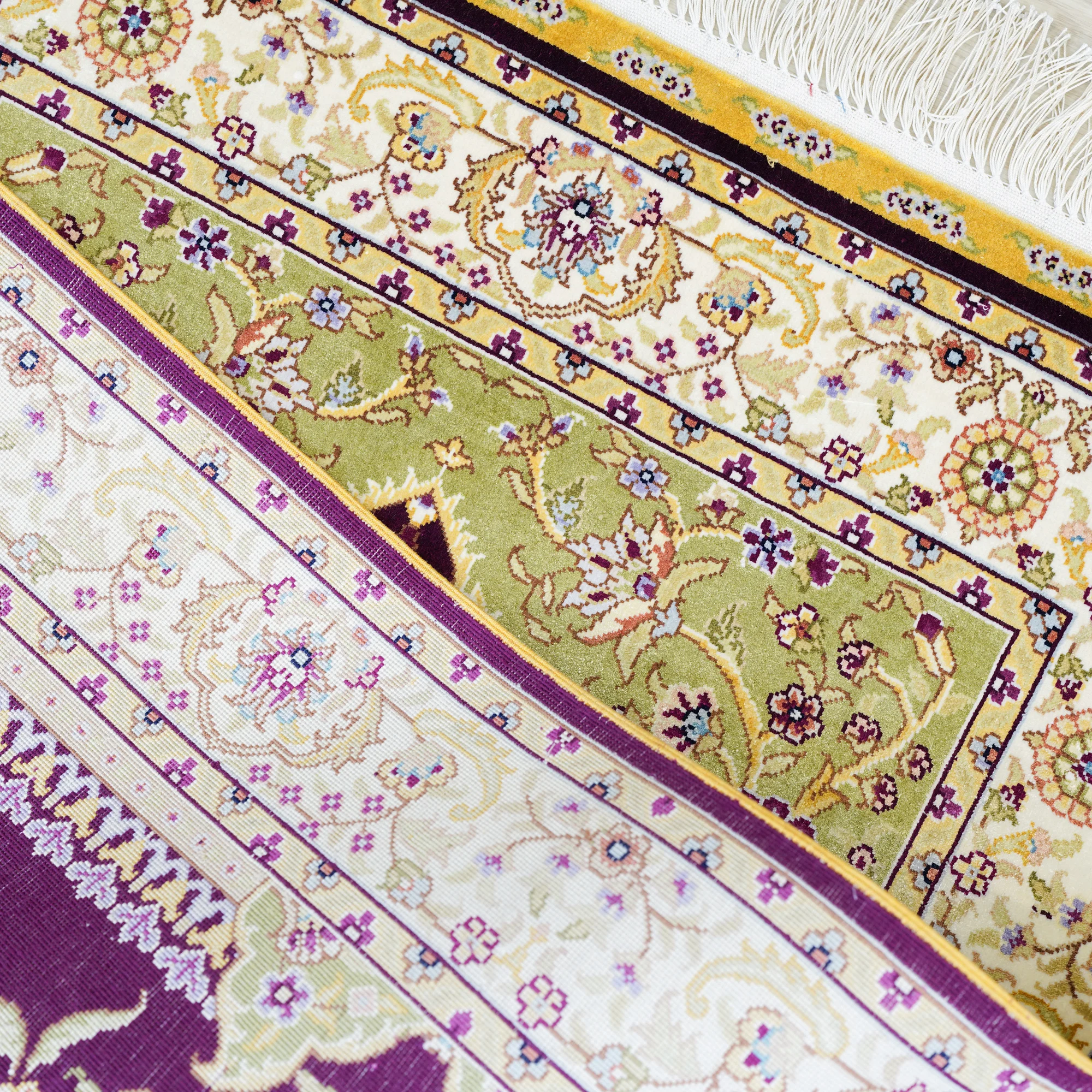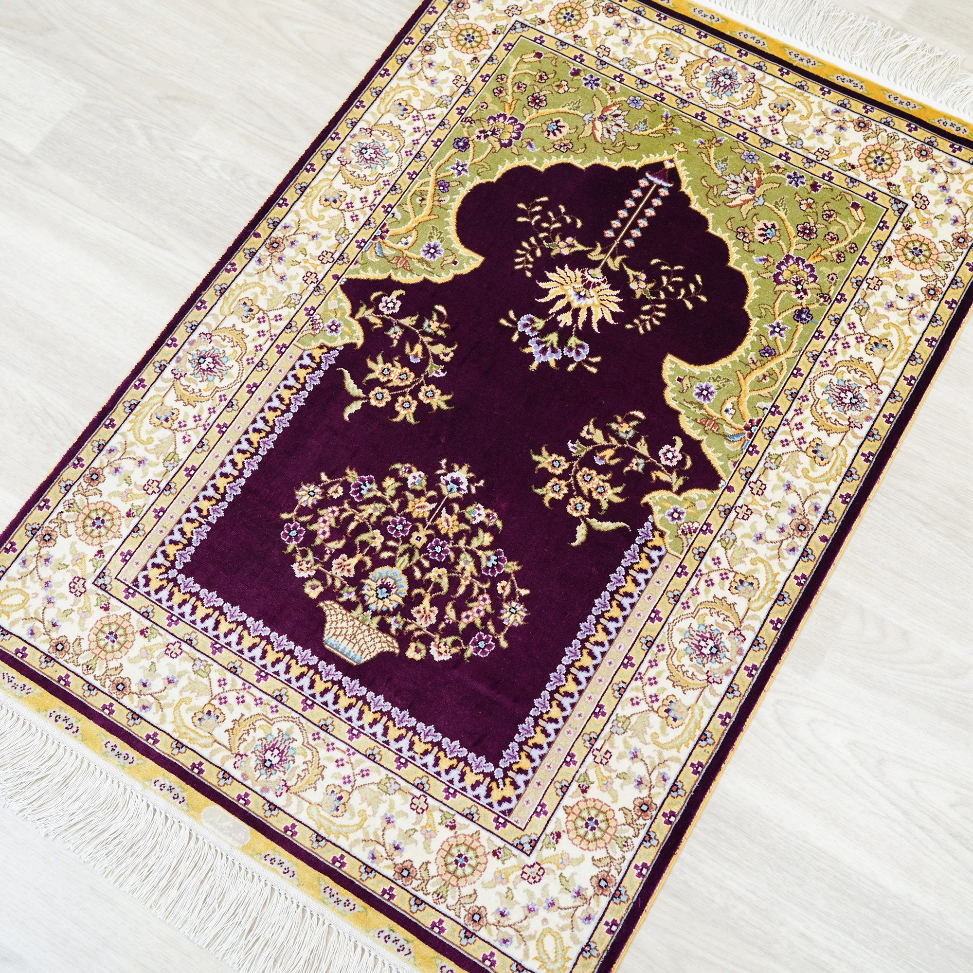 Durability is built into every aspect of the rug’s construction. Reinforced serged edges prevent fraying, while the short decorative fringe on both ends adds authenticity without compromising strength. A stain-resistant surface treatment helps guard against everyday spills, ensuring the rug maintains its elegance through regular use. Its lightweight design makes it easy to roll, transport, and store—perfect for travel, prayer on the go, or switching between different rooms.