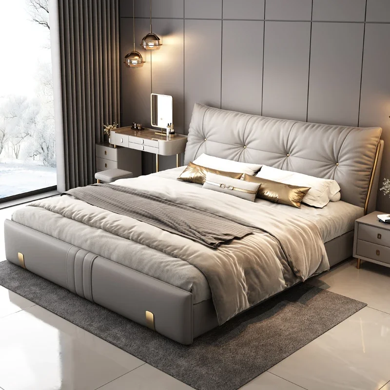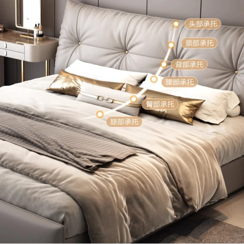Bedroom Furniture Modern Leather Double Bed Headboard Frame Cama De Casal King Bed 150X200 Wood Shelve Luxury Modern