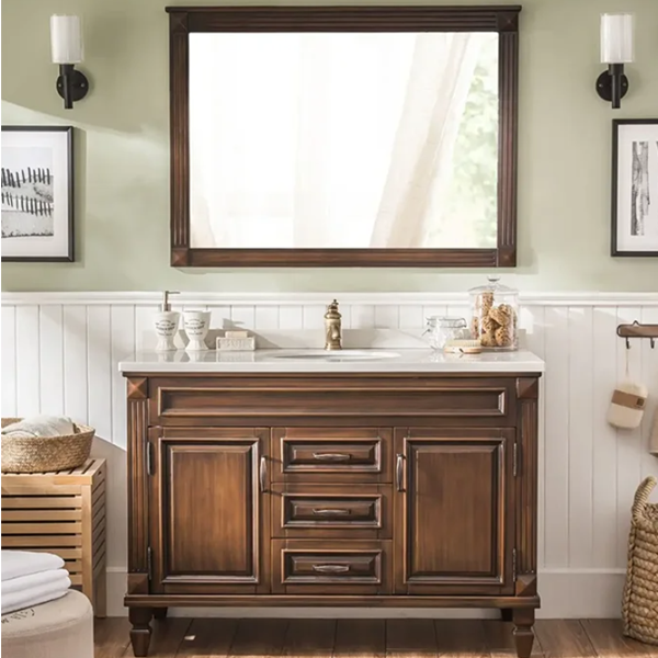 Installation is installer-friendly without sacrificing quality. The Heritage Oak Manor ships with a concealed mounting bracket for secure placement, a pre-cut access panel for plumbing, and clear alignment guides for the mirror. The top accommodates standard one-hole and three-hole faucet configurations so you can fit wall-mount or deck-mounted taps depending on your design. For older houses undergoing renovation, the freestanding form offers simple placement without extensive wall reinforcement; for new builds or remodels, the mirror can be wired for integrated lighting if desired.
