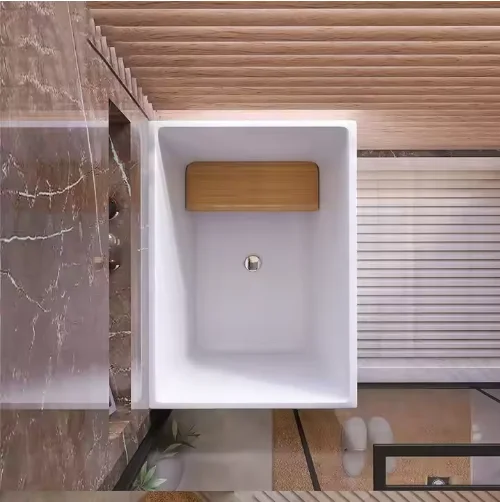 The AquaLuxe Deep Serenity Tub is designed to bring pure relaxation, elegant style, and long-lasting durability into any modern bathroom. Crafted with a sleek silhouette and a smooth solid-surface acrylic finish, this freestanding tub blends minimalism with luxurious comfort. Its deep-soaking interior invites you to unwind, stretch out, and enjoy a spa-like bathing experience right at home. The compact, space-efficient rectangular form makes it ideal for both small and mid-sized bathrooms without compromising on comfort or soaking depth.