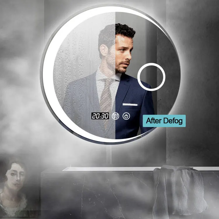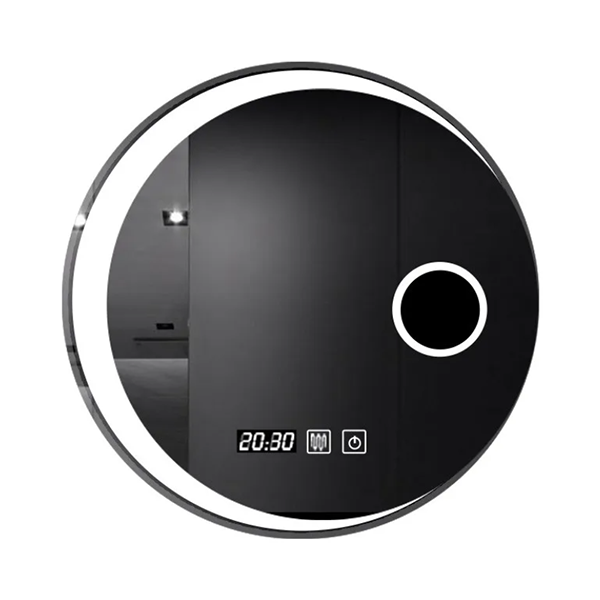 Transform your bathroom into a polished, tech-forward sanctuary with the LunaEdge Smart Glow Mirror — a round, modern LED mirror that pairs refined minimalist design with thoughtful smart features. At its core the LunaEdge delivers flawless, shadow-free lighting thanks to a continuous LED ring that traces the outer edge, while a recessed magnifying disc provides a dedicated close-up zone for precision tasks like eyebrow grooming or contact-lens insertion. Finished in a slim silver bezel and engineered glass, the LunaEdge reads like a sculptural object on your wall yet performs like a professional vanity tool: anti-fog heating keeps the surface clear after hot showers, touch-sensitive controls give instant command of light levels and power, and a discrete digital clock keeps you on schedule.