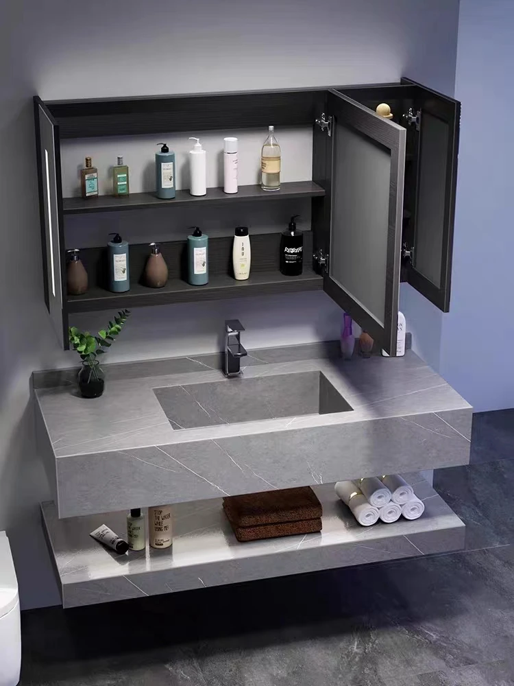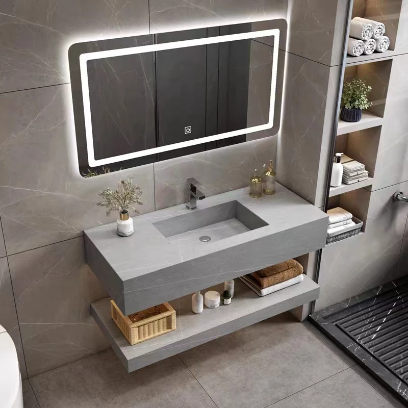 Aesthetic versatility makes the Obsidian Luxe Halo Console easy to integrate into diverse design schemes. It pairs with matte-black fixtures for a moody, industrial look, with warm-brass taps for a touch of glamour, or with crisp white tile and soft wood accents for modern contrast. The open shelf is ideal for showing curated accessories that echo the room’s palette — folded linen, woven baskets, or designer toiletries — while the bold countertop becomes the room’s focal point.