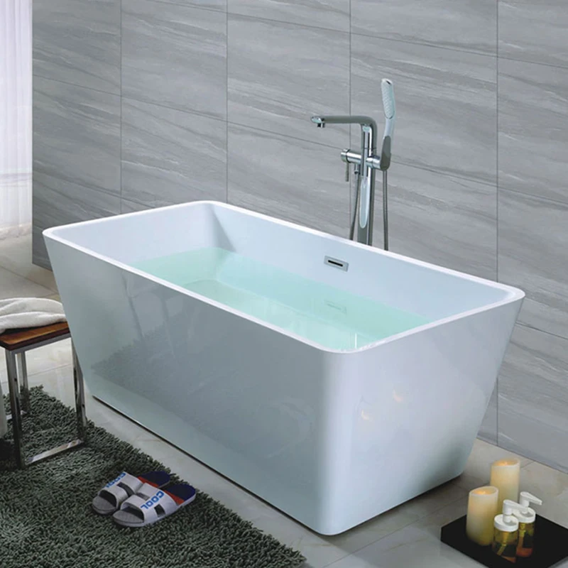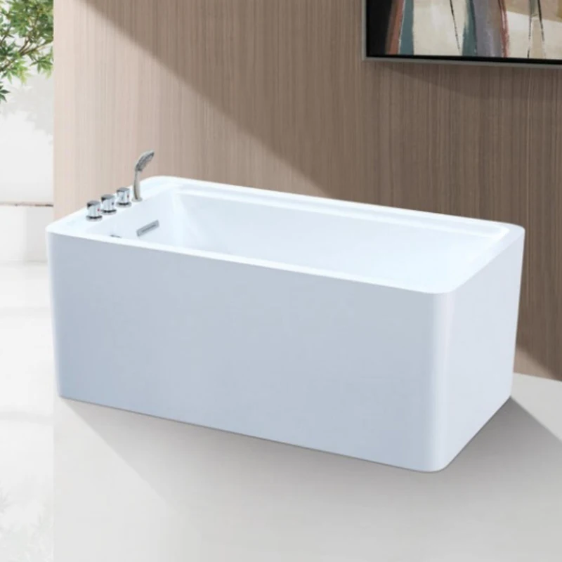 The PureForm Rectangle Freestanding Tub transforms any bathroom into a sleek, modern bathing sanctuary. This high-quality, solid-surface acrylic tub combines minimalist geometry with durable, spa-worthy craftsmanship — designed for homeowners who value clean lines, deep-soak comfort, and easy maintenance. With its crisp rectangular profile, smooth matte-white finish, and ample internal volume, PureForm offers a luxurious bathing experience that’s both contemporary and timeless. Whether it’s placed centrally as a freestanding feature or nestled against a wall, this tub serves as a striking focal point and a functional centerpiece for daily relaxation.