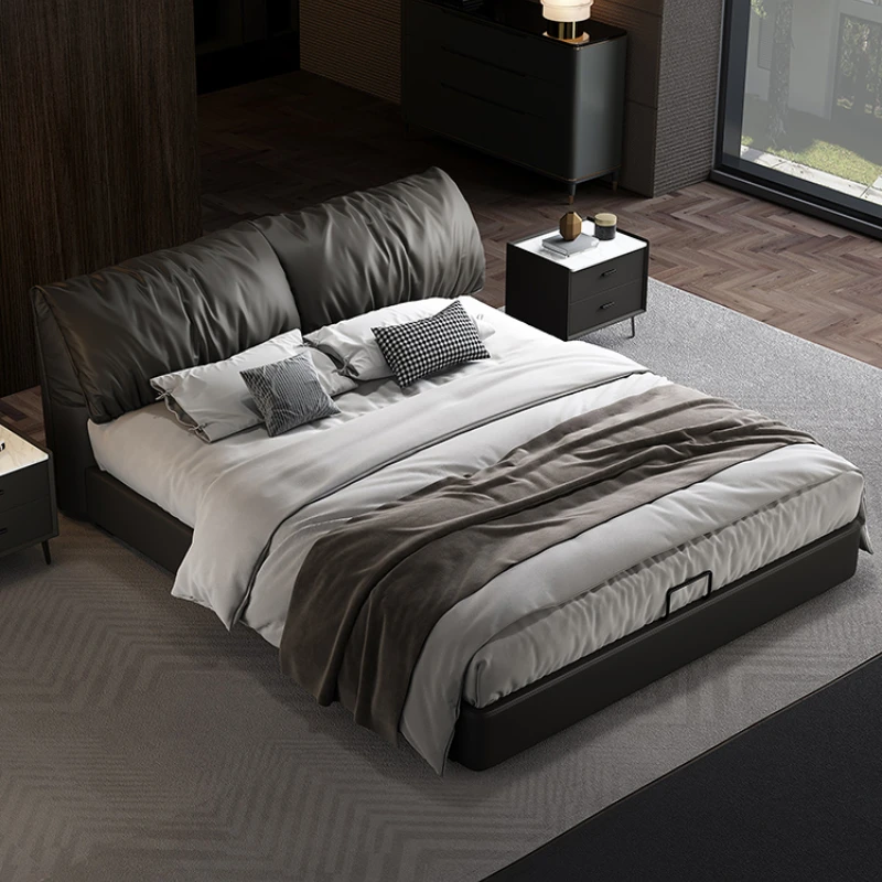 Italian master bedroom double bed 1.8×2 luxury double bed storage 1.5m net red leather bed
