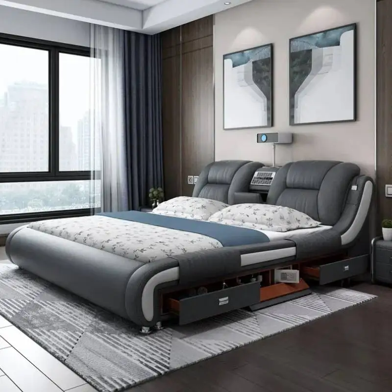Nightstands Drawers Fancy Bed Waterproof Luxury Sleeping Frame Bed Storage Space Muebles Para El Hogar Bedroom Furniture