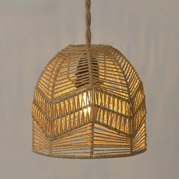 The defining feature of this fixture is its beautifully sculpted dome-shaped shade made from high-quality natural fibers. Each strand is carefully woven to form a symmetrical chevron-inspired pattern that enhances airflow and light diffusion. The open-weave design allows soft, dappled illumination to escape through its geometric structure, producing a comforting blend of light and shadow. This creates a soothing, organic ambience ideal for modern homes, minimalist interiors, coastal retreats, and rustic farmhouses alike.