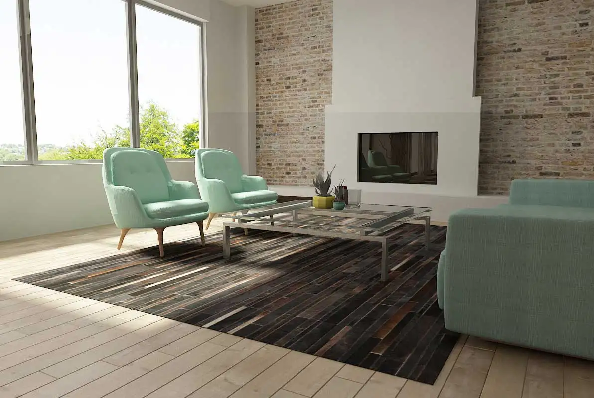 Durability is a defining trait of cowhide, and TimberStrip™ leverages that advantage. Cowhide resists wear and naturally conceals scuffs and pet activity thanks to its variation in tone and grain. The hide’s leather-like surface also repels many liquid spills — droplets bead momentarily and can be blotted up before staining — and this rug is finished with a non-toxic protective treatment that increases stain resistance without compromising the natural sheen or texture of the hide. Because the strips are arranged lengthwise, high-traffic paths visually read as intentional striations rather than wear patterns, making this rug a smart aesthetic and functional addition to busy homes.
